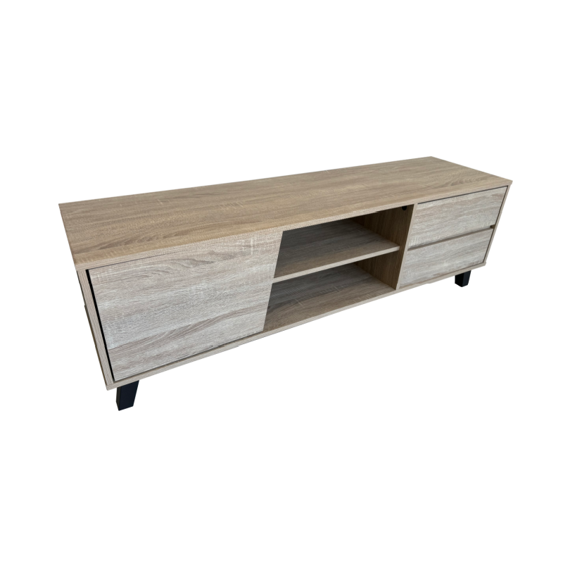 This amazing wooden look TV Stand welcomes smooth lines and subtle finishing to inspire your dining, living or bedroom space. The combination of beautiful wooden look and exquisite textured metal creates a stunning ‘must have’ sitting spot.